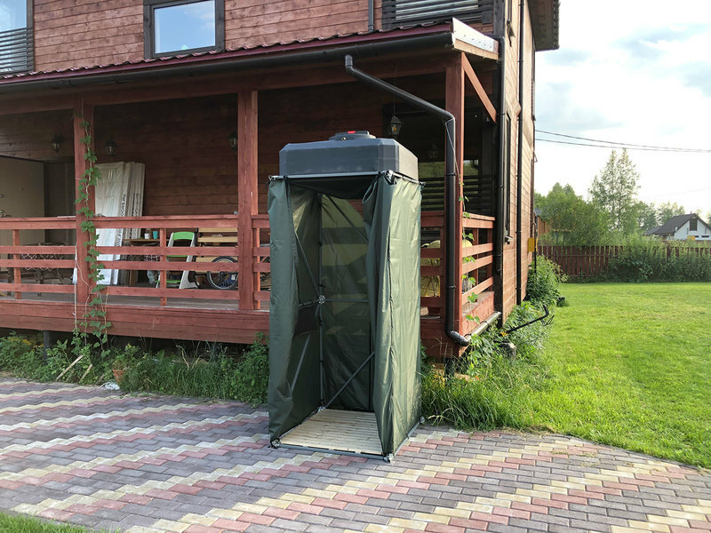 Многие дачники делают душевые кабины из подручных средств. Обязательным элементом душевой кабины является бак, который устанавливают наверху.
